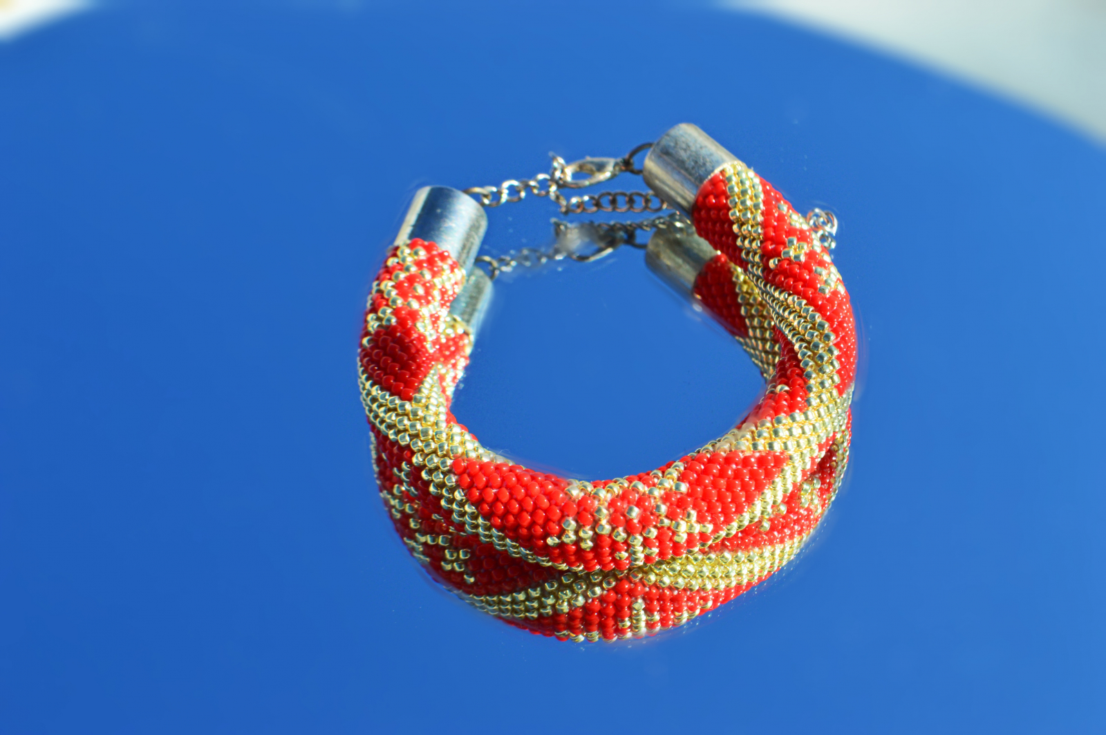 O bijuterie care aduce cu ea stralucirea iernii. Aceasta bratara handmade este crosetata cu margele Toho si decorata cu un model delicat de fulgi de zapada, creand un joc elegant de lumina si textura.