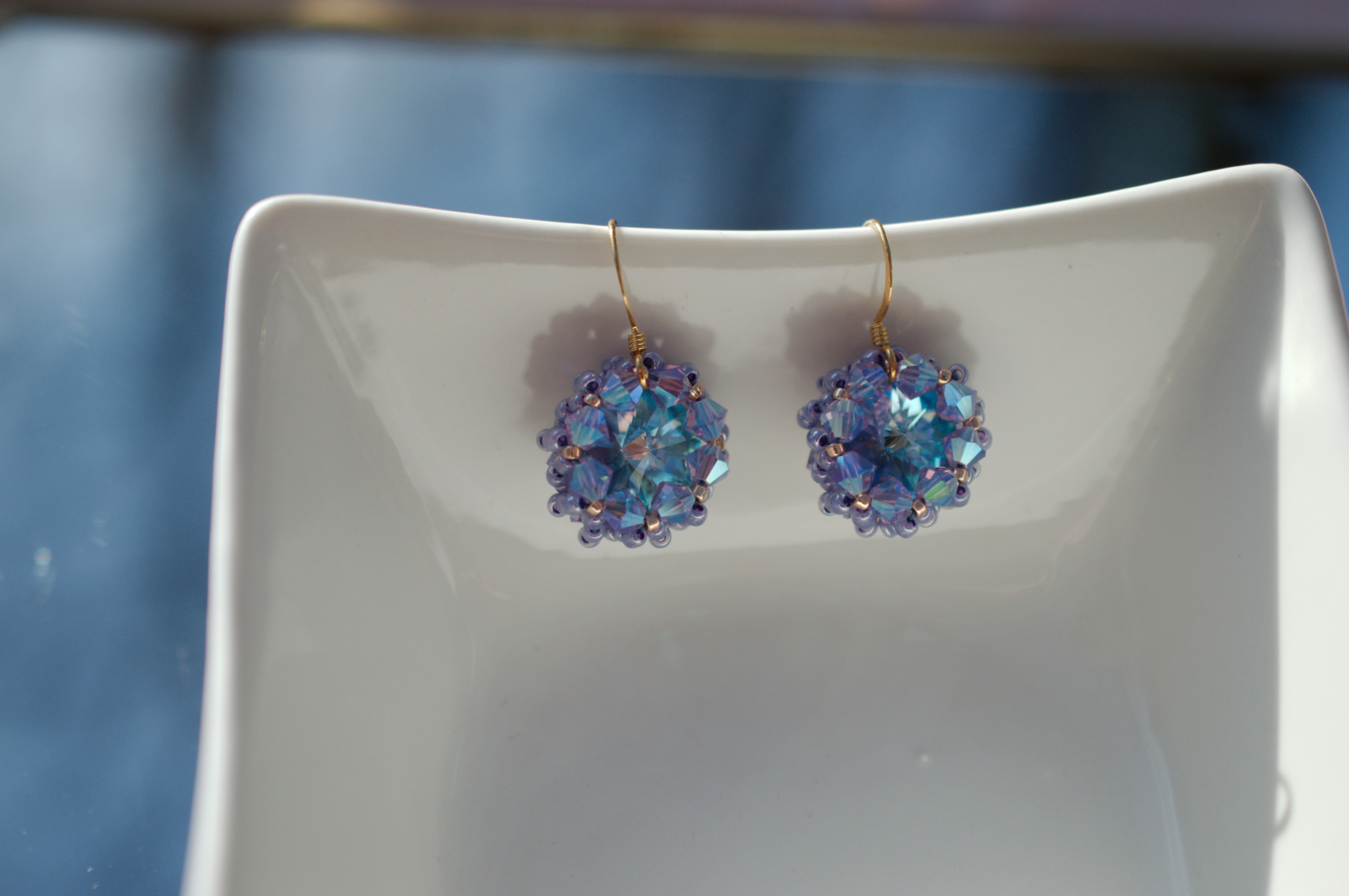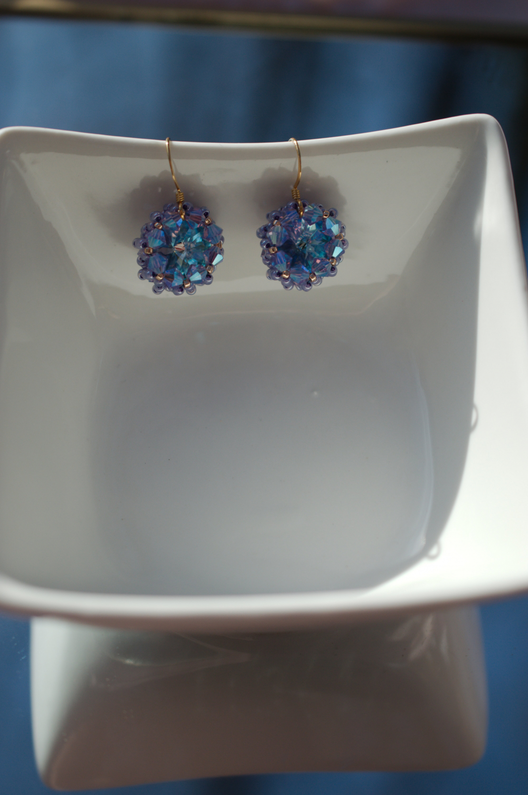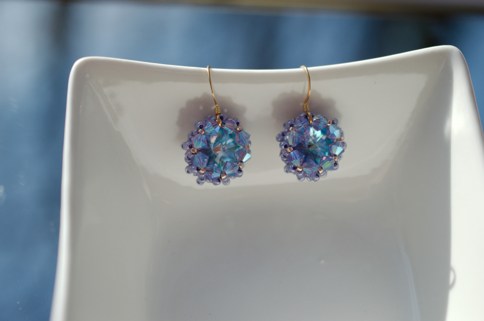 Adauga un plus de magie tinutei tale cu acesti cercei stralucitori, realizati manual cu cristale Swarovski cu reflexii albastru-mov. In functie de lumina, nuantele lor se transforma spectaculos, oferindu-ti un look sofisticat si plin de farmec.