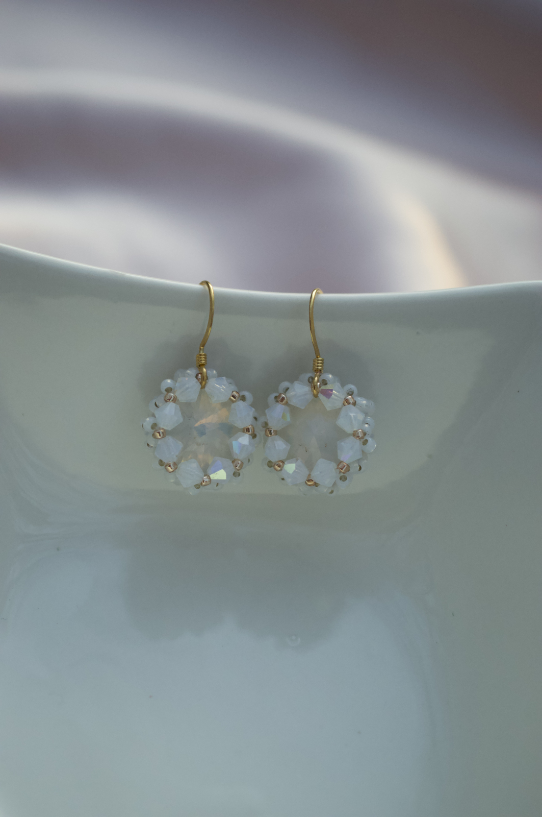 Model rotund realizat integral din cristale Swarovski White Opal, cu reflexii perlate care schimba discret nuanta in functie de lumina. Sunt mici, dar foarte vizibili prin jocul de irizatii. Genul de cercei care merg cu orice, dar nu par niciodata banali.