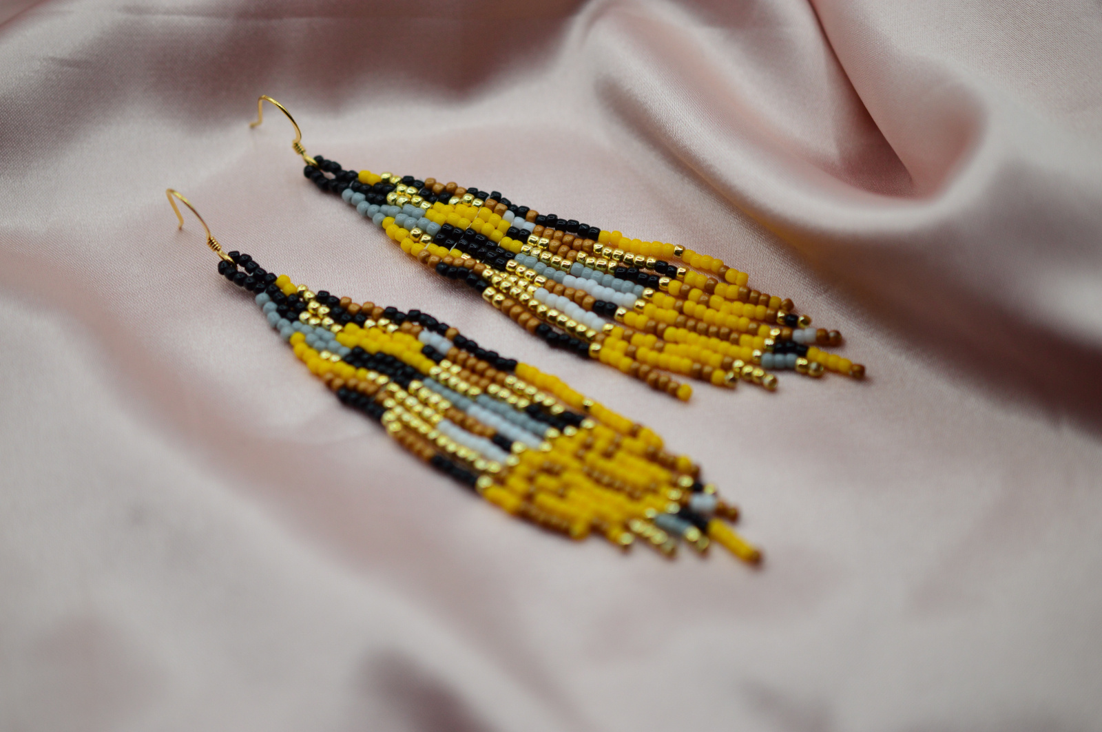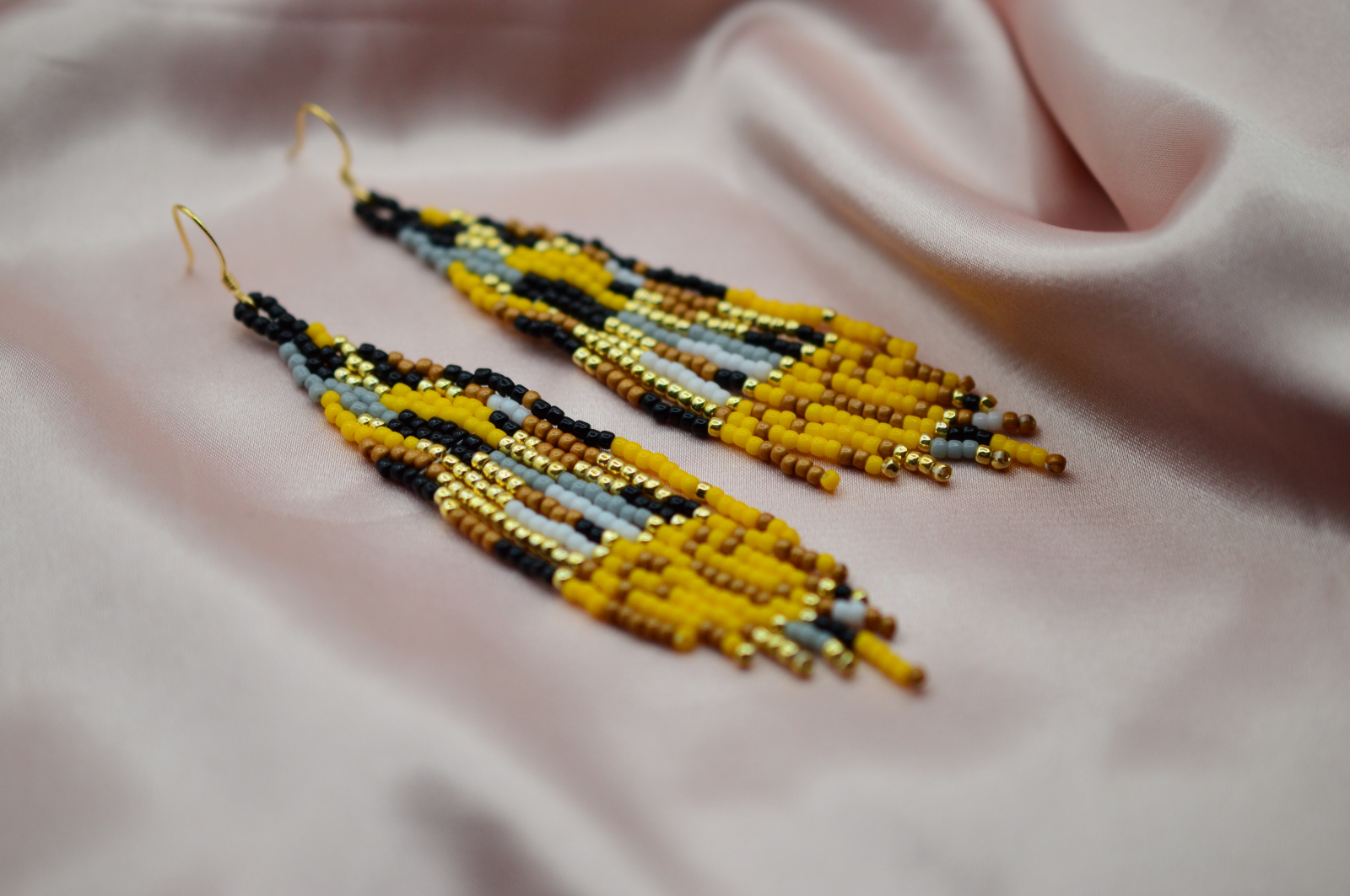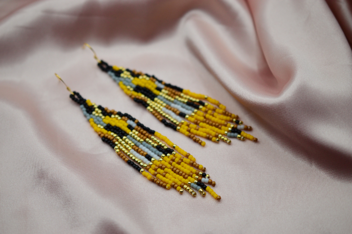 Modelul este inspirat direct din celebra pictura “The Kiss” de Gustav Klimt. Aurul, negrul si accentele grafice refac in margele structura mozaicului iconic, cu acea senzatie de opulenta calma care face tabloul recognoscibil dintr-o privire.