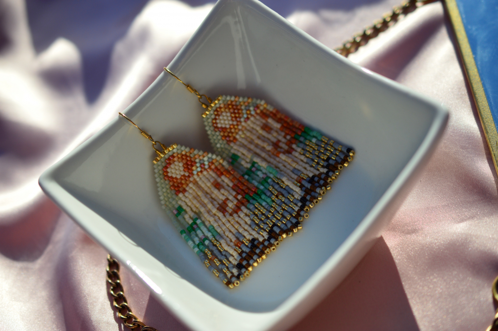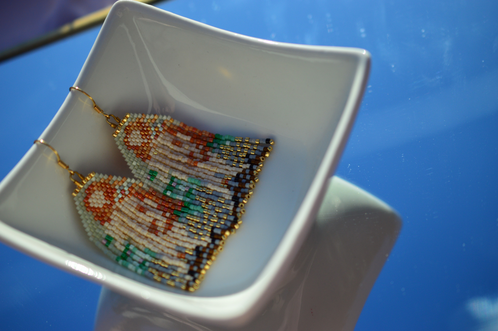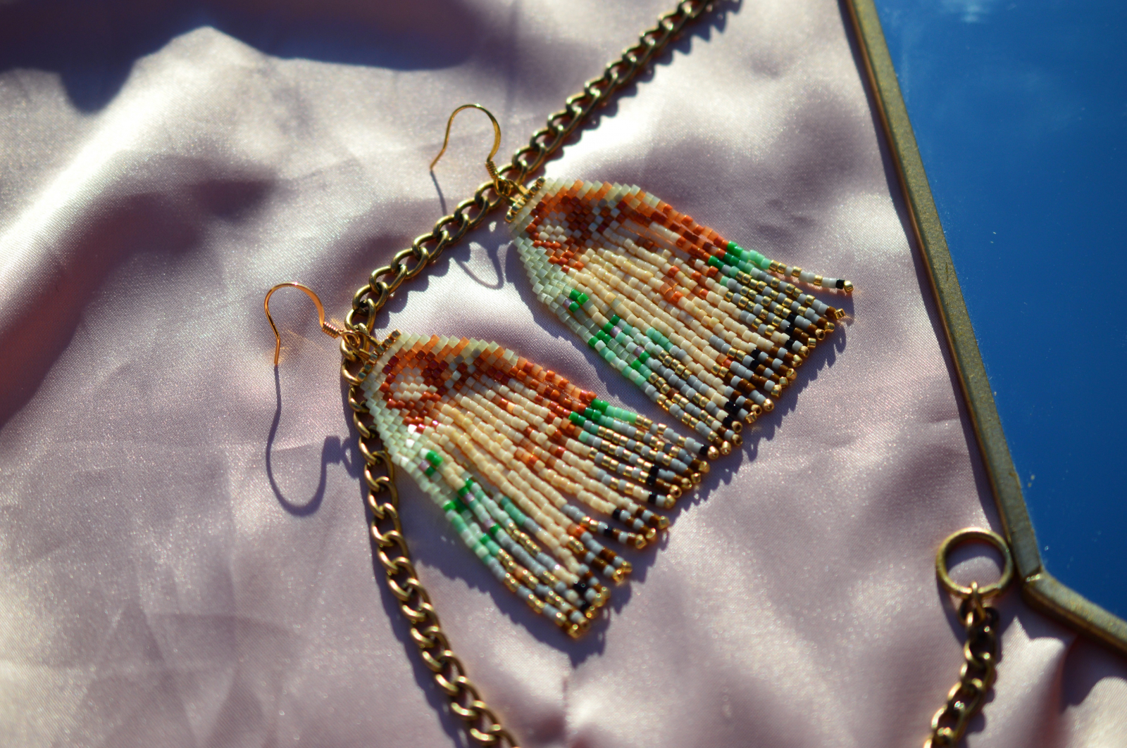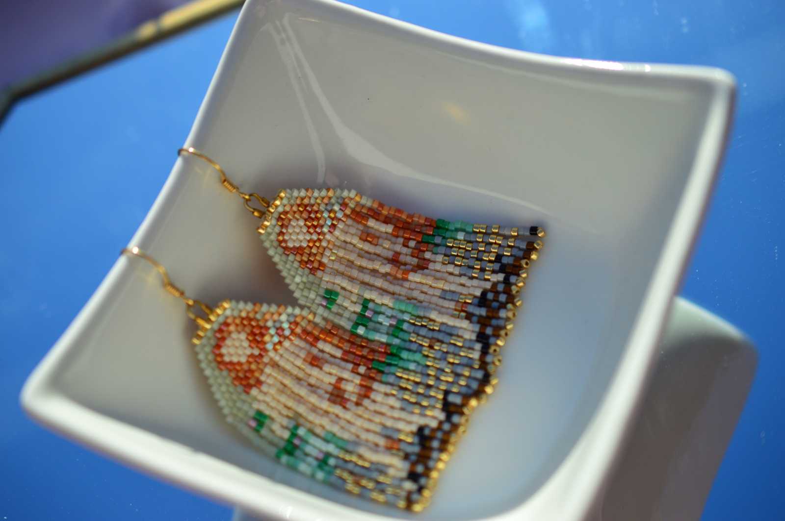 Lucrati manual din margele Delica, in serie mica, fiecare pereche pastreaza echilibrul dintre arta renascentista si bijuteria contemporana.