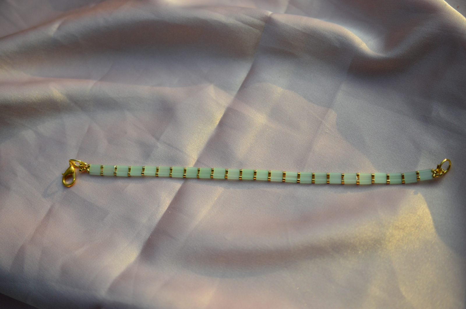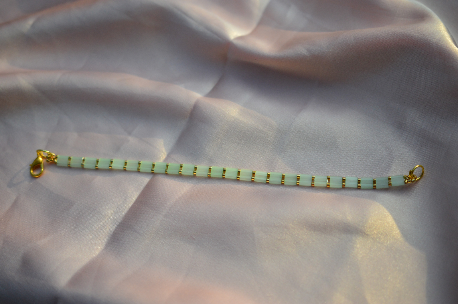Bratara Tila in nuante de verde pal este un produs unic, handmade care se potriveste perfect pentru un look iesit din comun. Iti garantam ca purtand aceasta bratara vei atrage privirile tuturor.