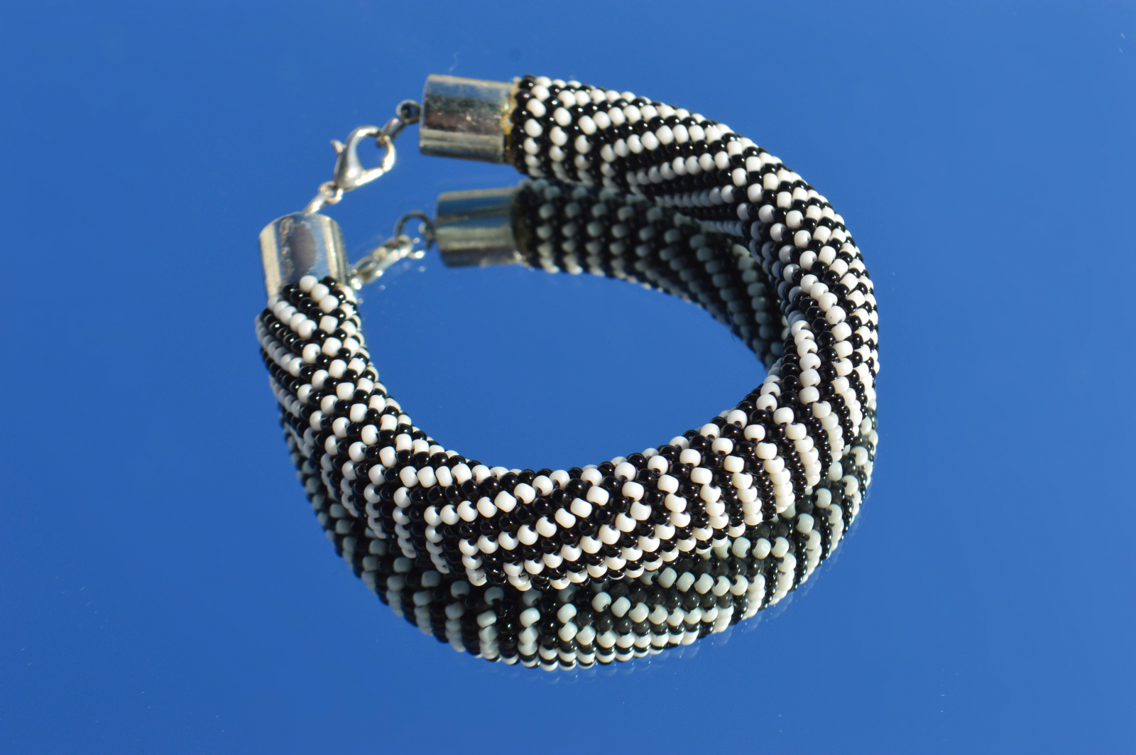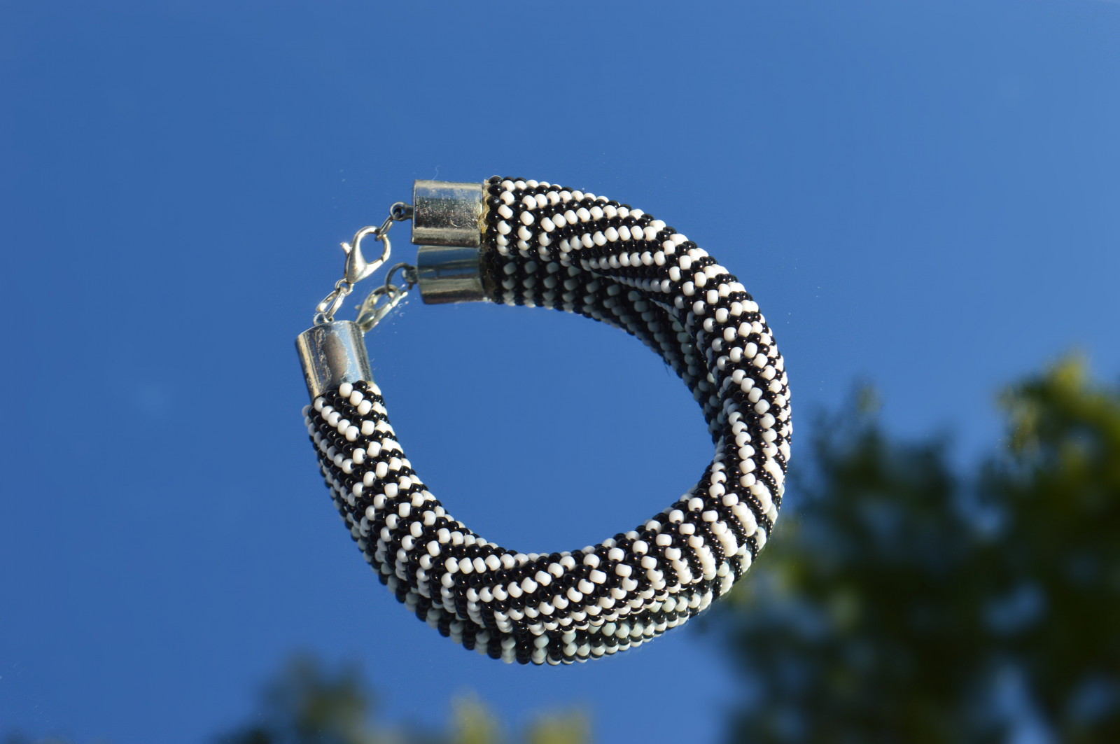 O bijuterie care aduce echilibru si forta in aceeasi miscare. Aceasta bratara handmade este crosetata cu margele Toho in contrast alb-negru, creand un joc grafic clar, modern si profund.