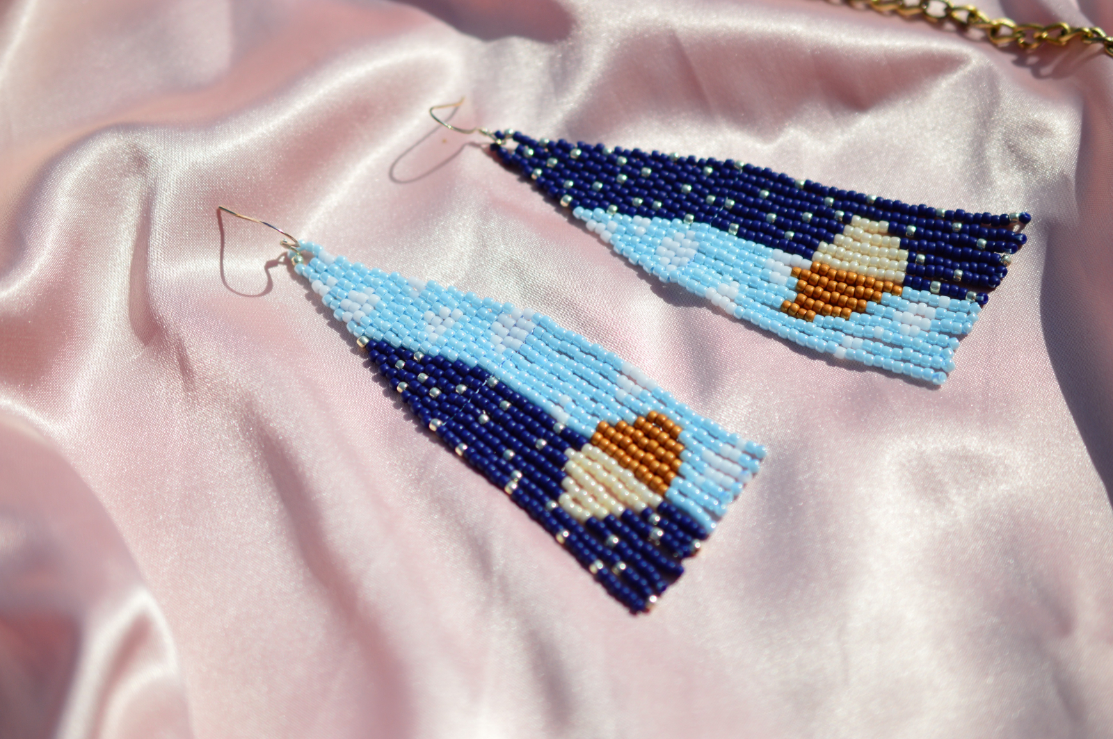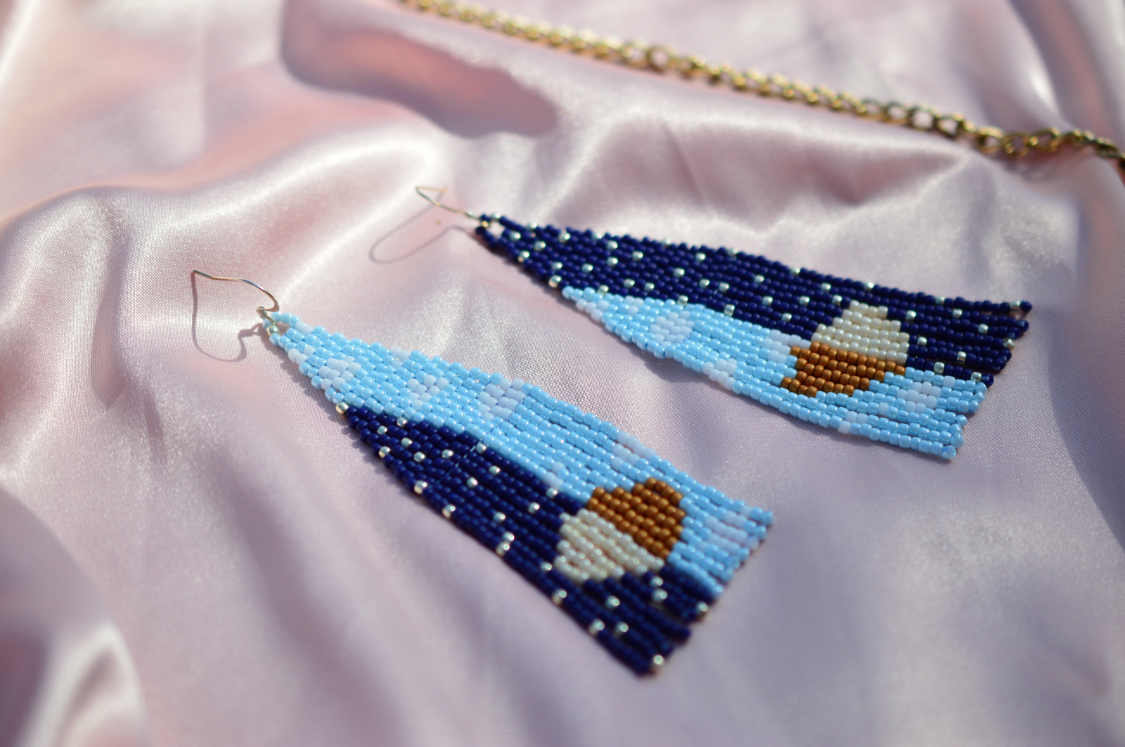 Asteria par ca au fost scosi direct dintr-un cer nocturn pictat in margele. Albastrul inchis, turcoazul rece si accentele aurii se imbina intr-un joc de lumina care aduce aminte de stele, adancimi si aer curat de noapte.