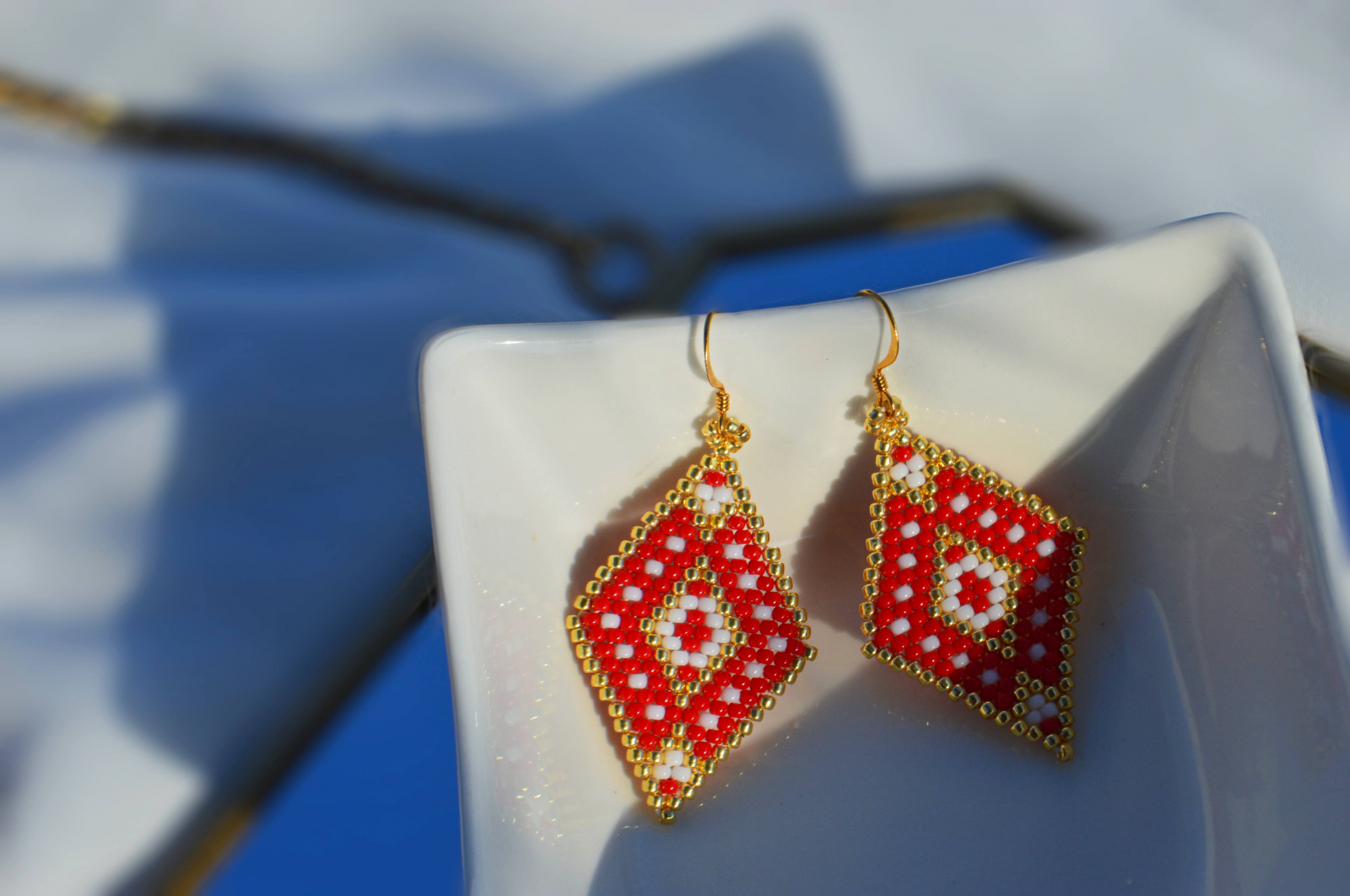 Cerceii Agatha sunt tesuti manual din margele Toho, intr-un joc geometric care prinde lumina din orice unghi. Forma lor grafica si culorile saturate creeaza un efect curat, modern, dar cu suflet artizanal.