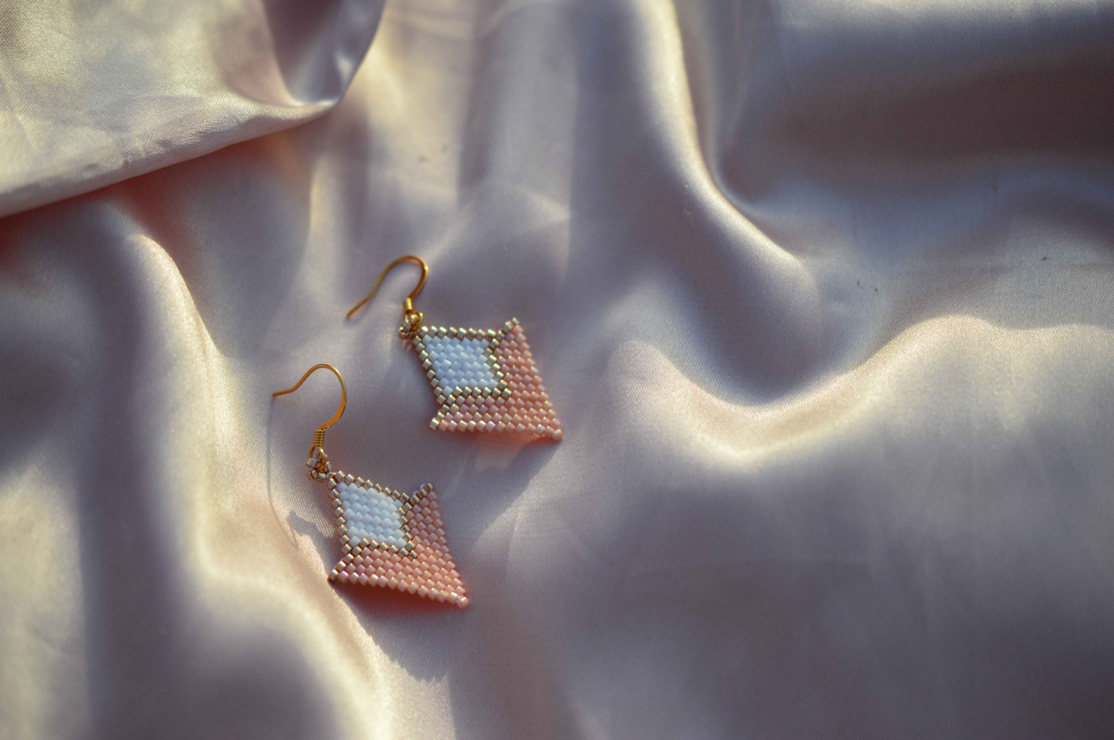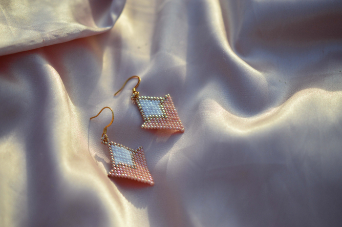 Un model fin, cu aer de bijuterie veche reinterpretata. Forma geometrica, culorile calde si margelele cusute una cate una dau cerceilor Amelia un aspect elegant, curat si foarte feminin. Sunt genul de cercei care nu striga, dar sunt observati. Se potrivesc perfect cu tinute minimaliste, rochii vaporoase sau camasi simple, unde pot deveni accentul care leaga tot look-ul.