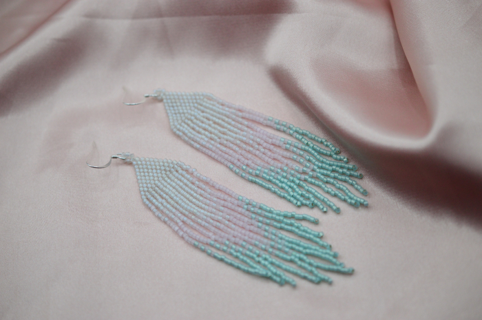 Cercei statement realizati manual, cu silueta alungita si textura fluida, inspirati de forma penelor si de ideea de miscare. Fiecare pereche este construita din margele Miyuki Delica, cu degradeuri de culoare care dau profunzime si dinamism piesei. Sunt usori, dar foarte vizibili, genul de cercei care schimba o tinuta simpla fara sa ceara explicatii.