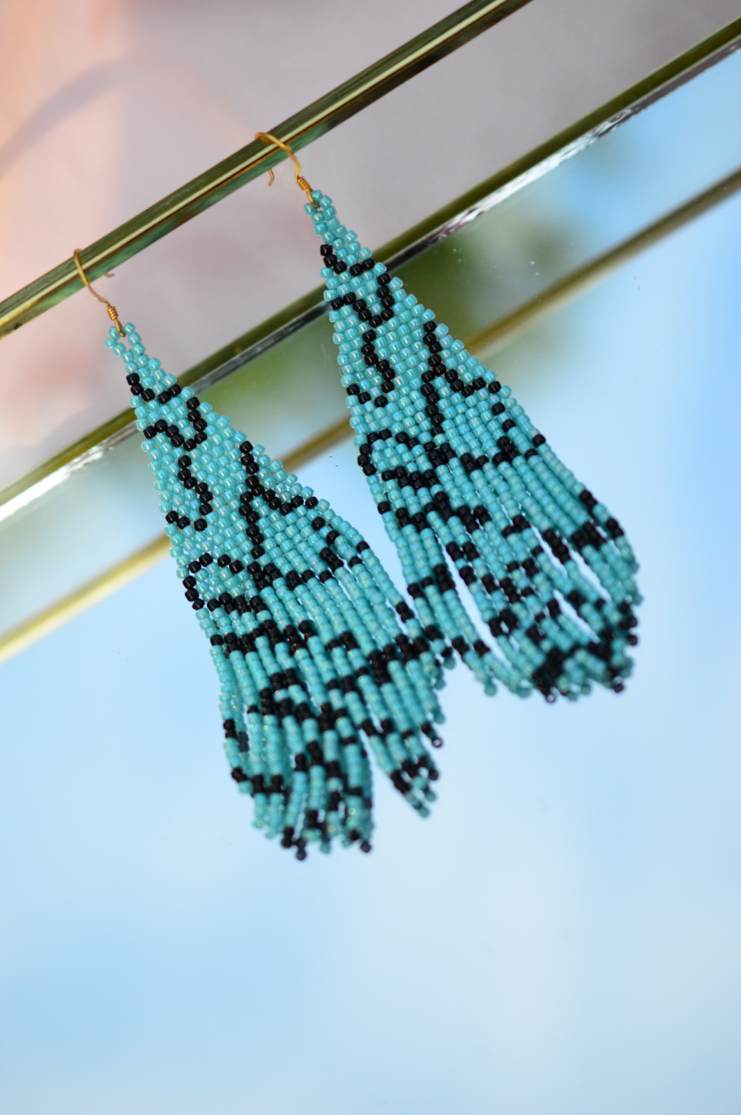 Un model cu aer rece, curat, inspirat din texturile marmurei naturale. Turcoazul intens si liniile negre creeaza un desen grafic care se vede de la distanta, dar ramane elegant de aproape. Sunt foarte bine echilibrati, nu incarca, dar se fac remarcati.