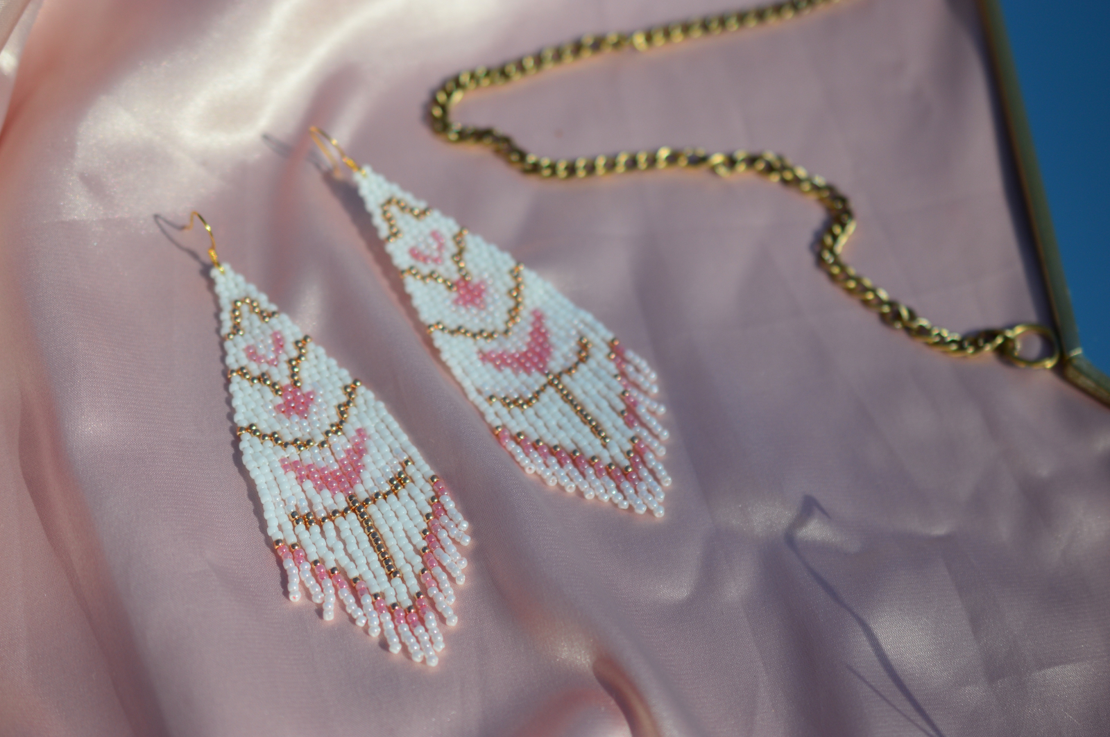 Cercei statement realizati manual, cu model geometric in nuante contrastante, inspirati din motive decorative clasice. Au o prezenta clara si alungesc frumos linia gatului.