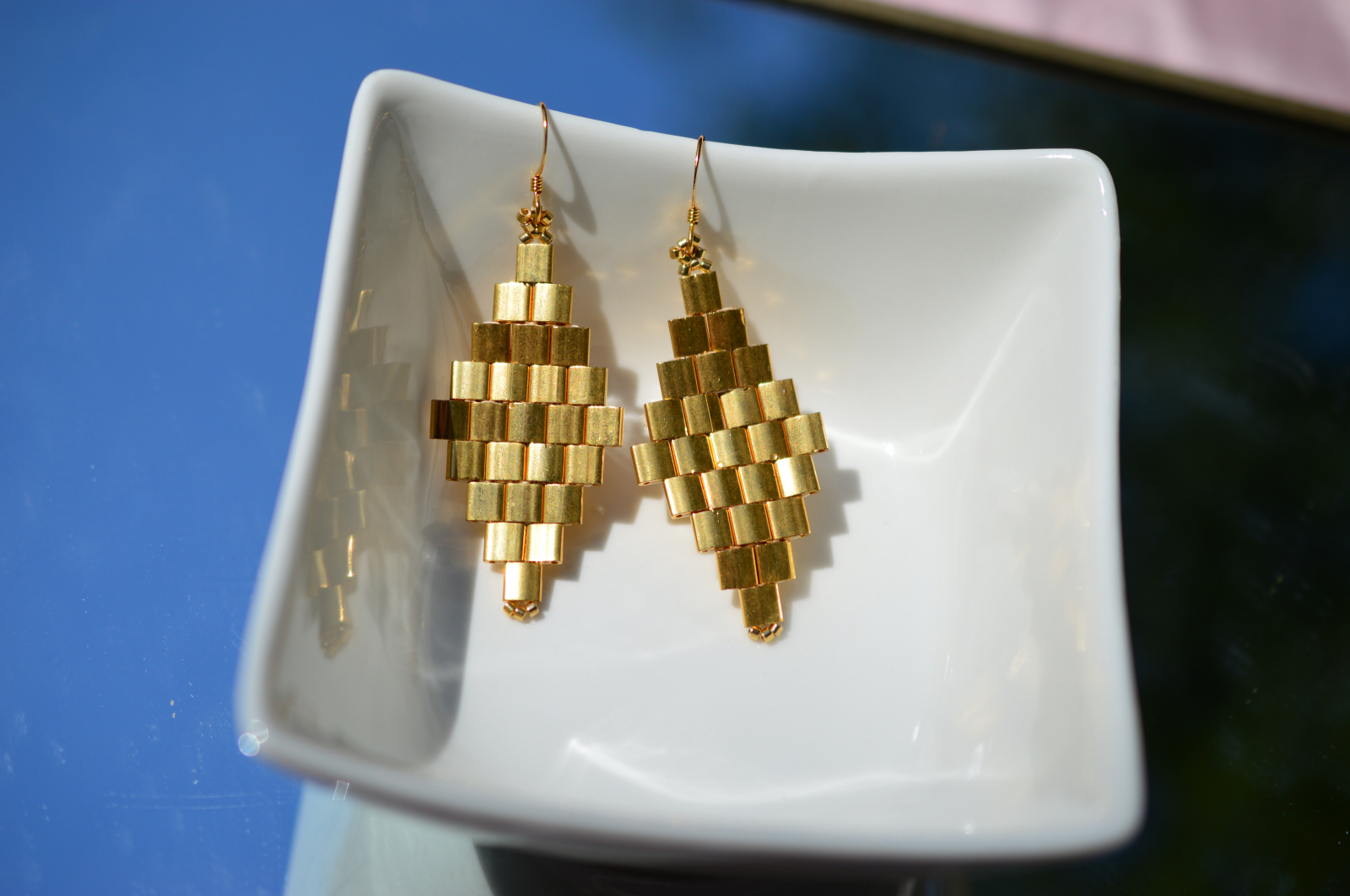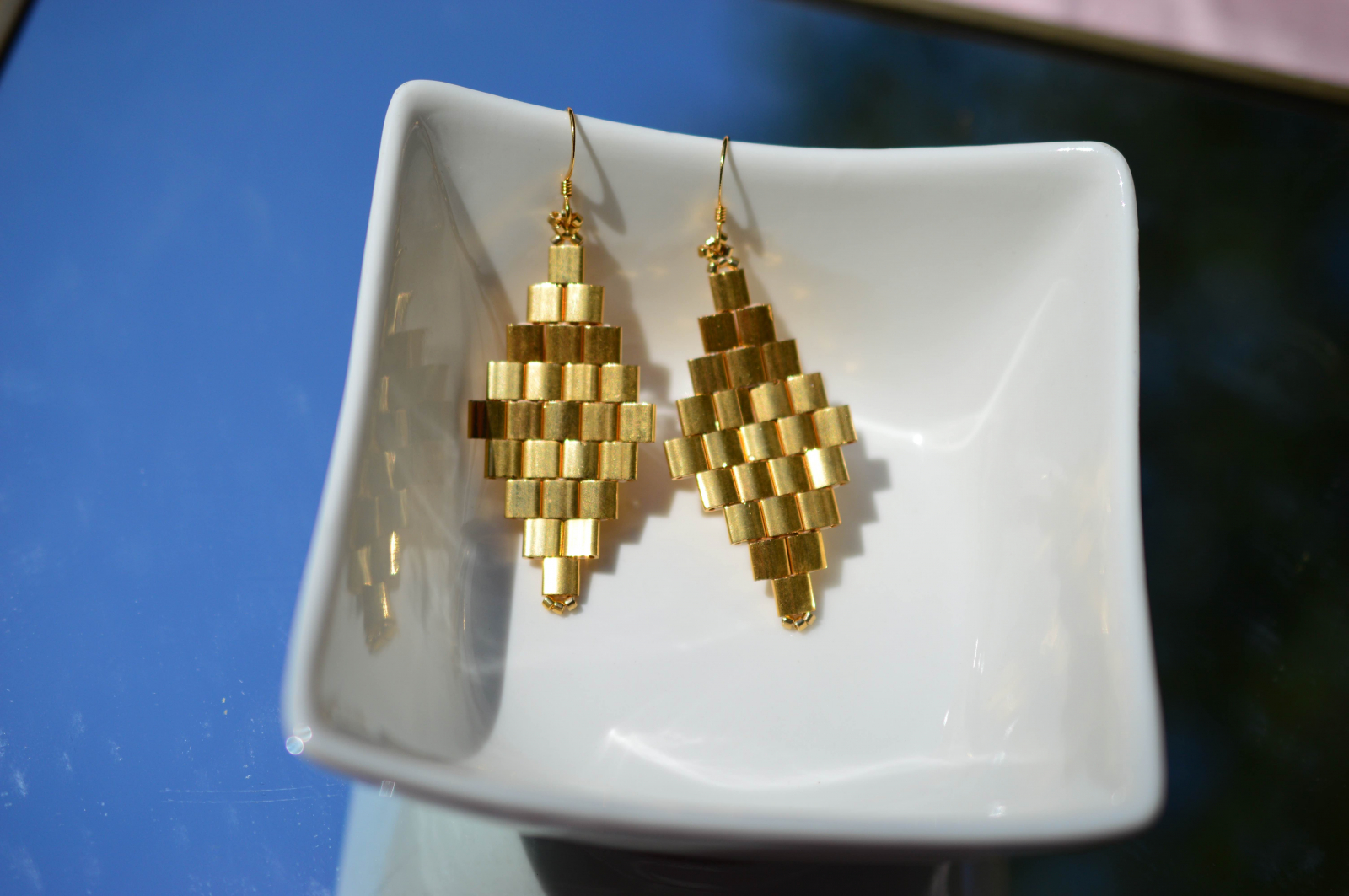 Un design curat, cu volum construit din straturi de margele Tila, pentru un efect geometric care prinde lumina din orice unghi. Forma lor alungita subtiaza vizual linia gatului si adauga un accent elegant, fara sa incarce tinuta.