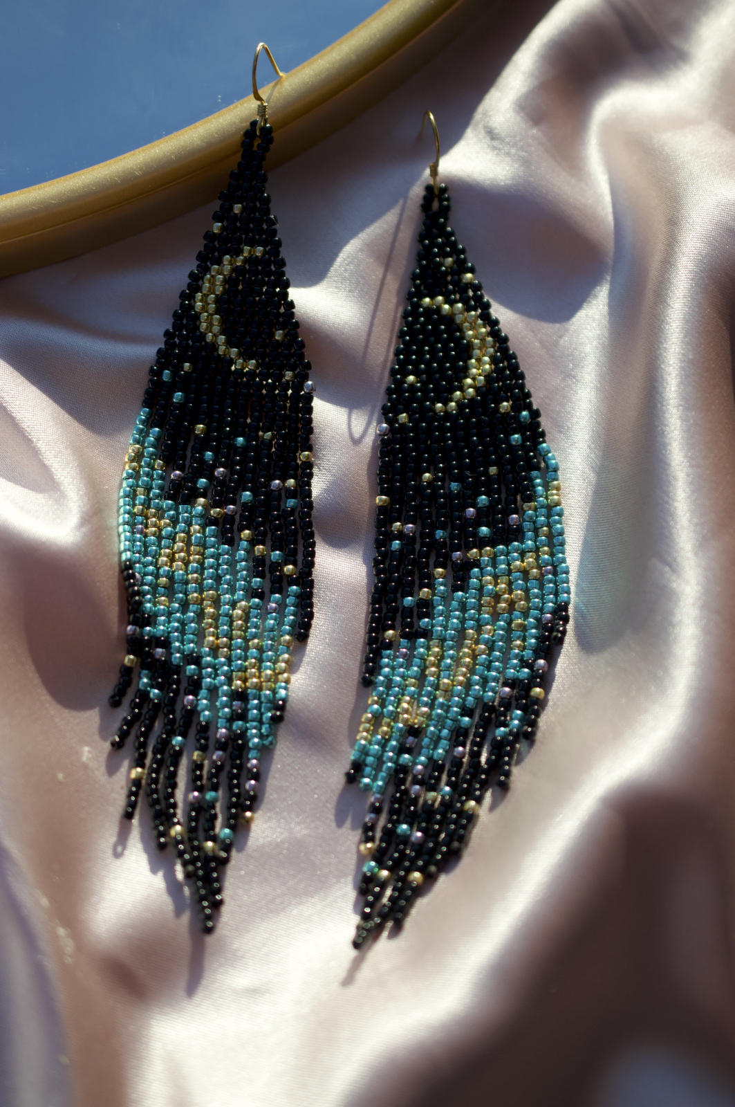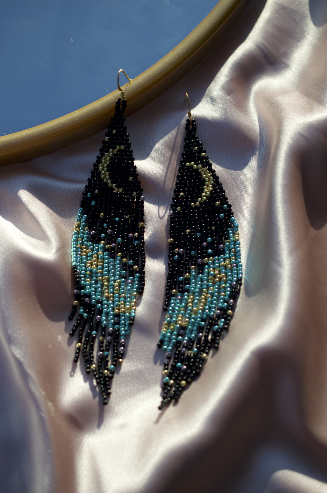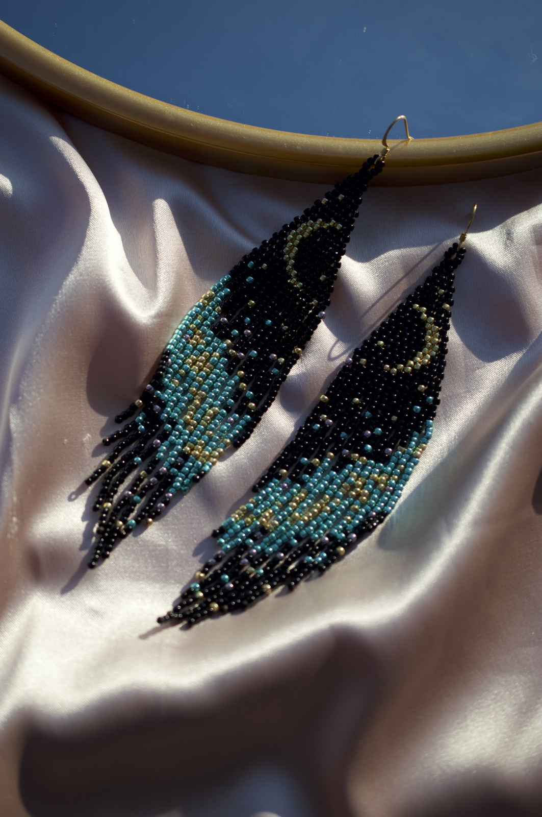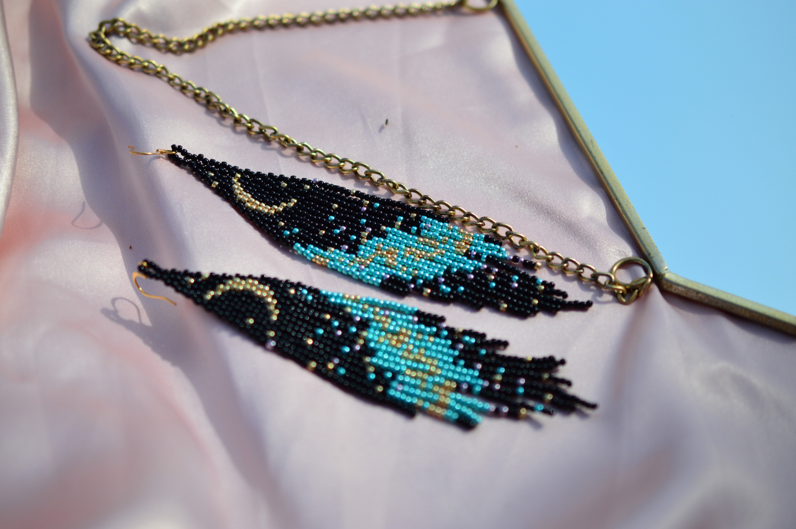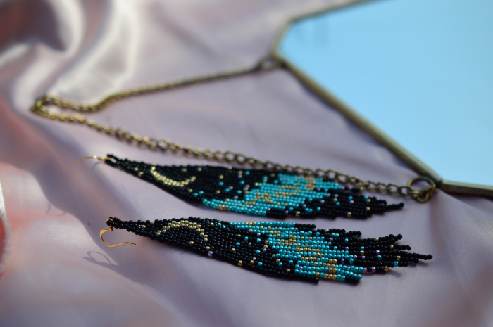 Adauga o nota de mister si rafinament tinutei tale cu cerceii Tyche, realizati manual cu migala folosind margelute Toho 11/0. Designul unic reprezinta o noapte senina, cu luna delicata pe un cer plin de stele, evocand energia divina a zeitei norocului si destinului.