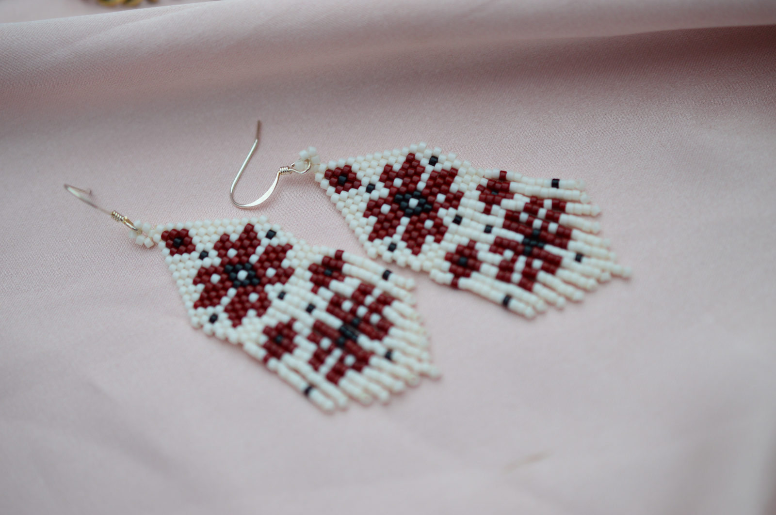Sunt lucrati manual, din margele Delica, asezate una cate una, iar franjurile subtiri dau miscare si aer.