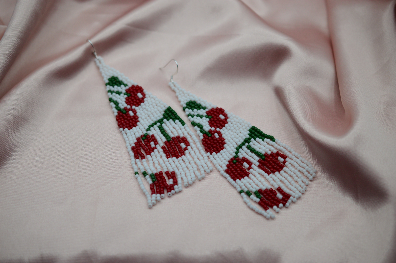 Cerceii Cherries sunt un omagiu adus verii tarzii, fructelor coapte si lucrurilor mici care iti schimba complet o tinuta. Modelul cu cirese este construit manual, cu un contrast curat intre rosu intens, verdele frunzelor si fundalul deschis care pune totul in lumina.