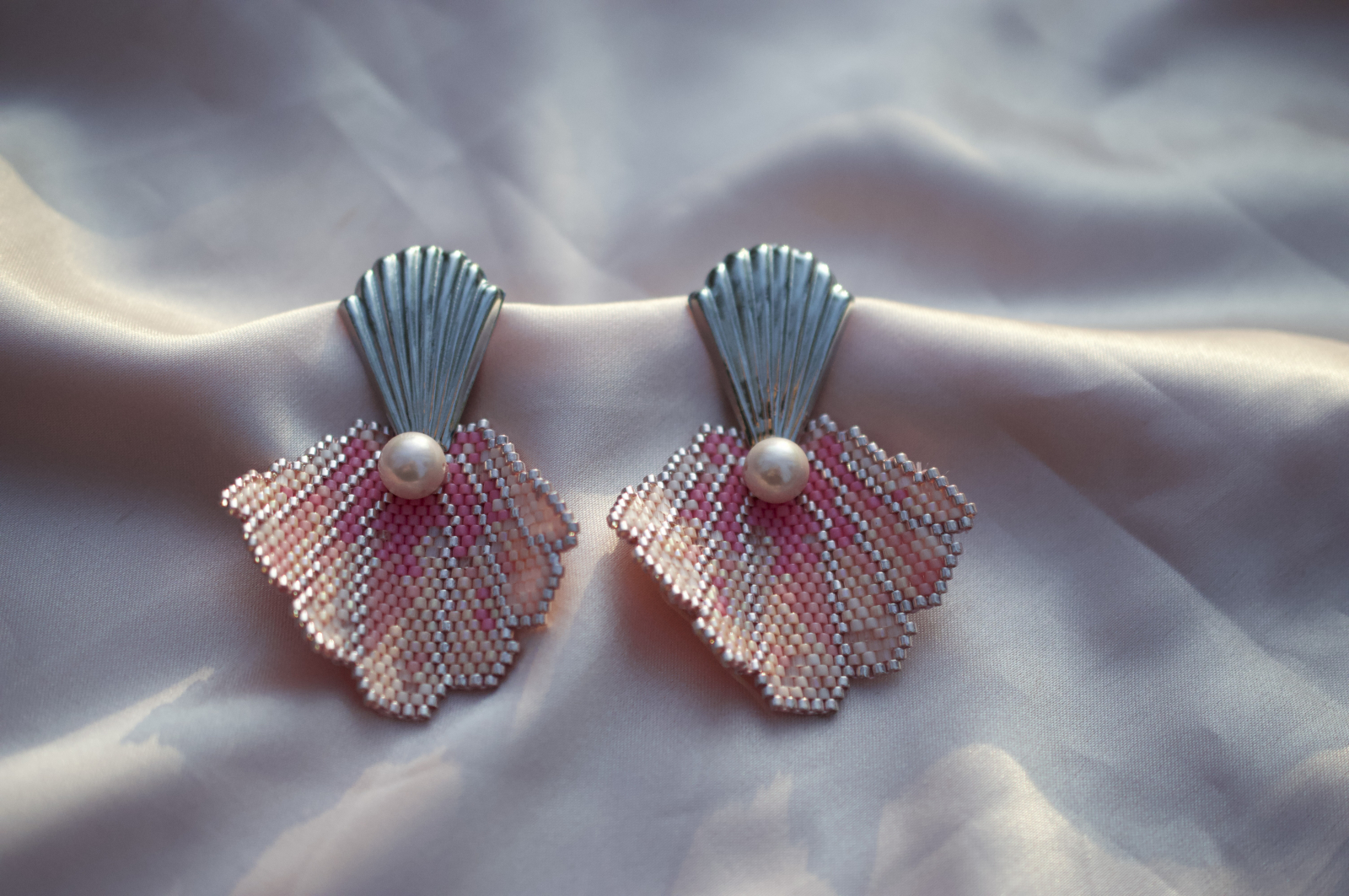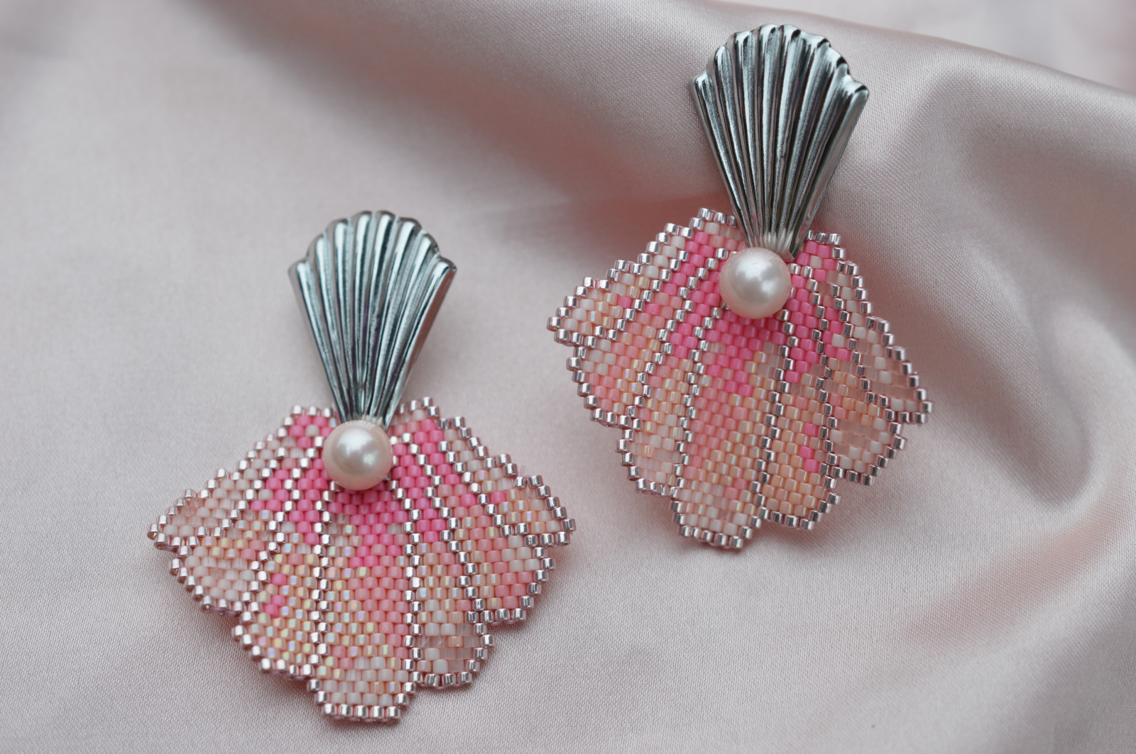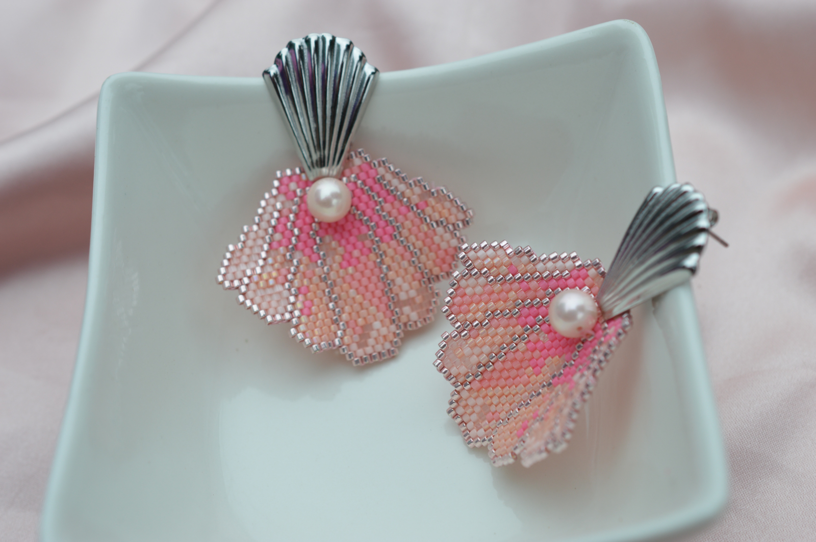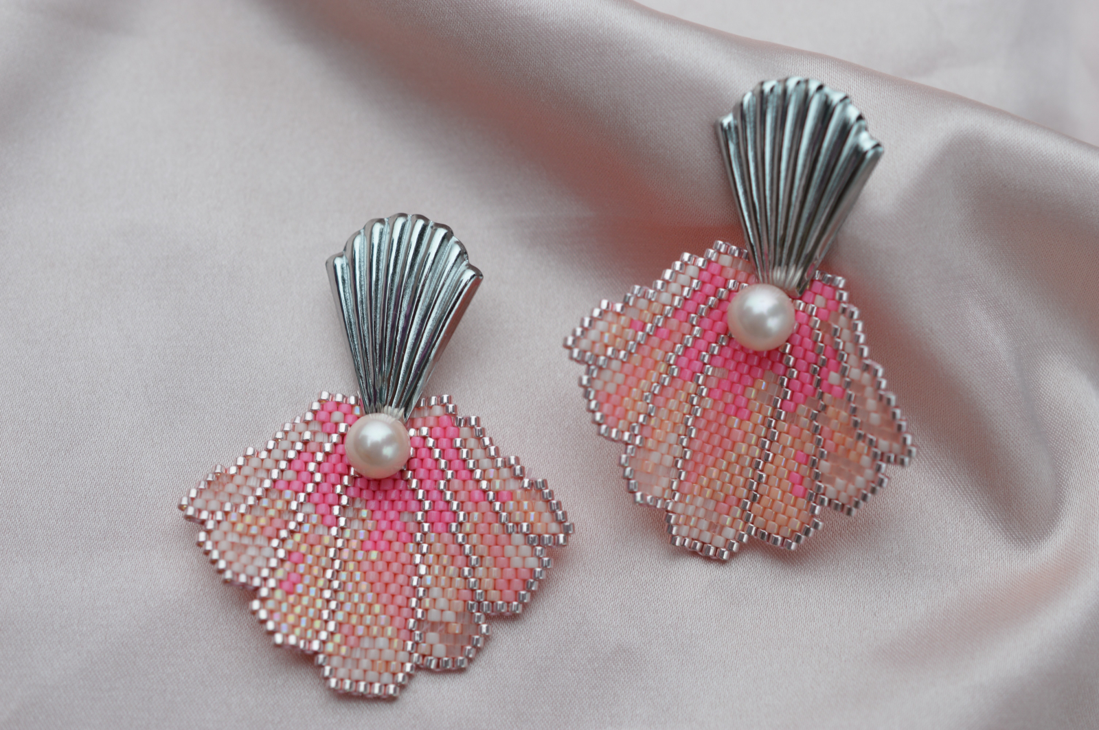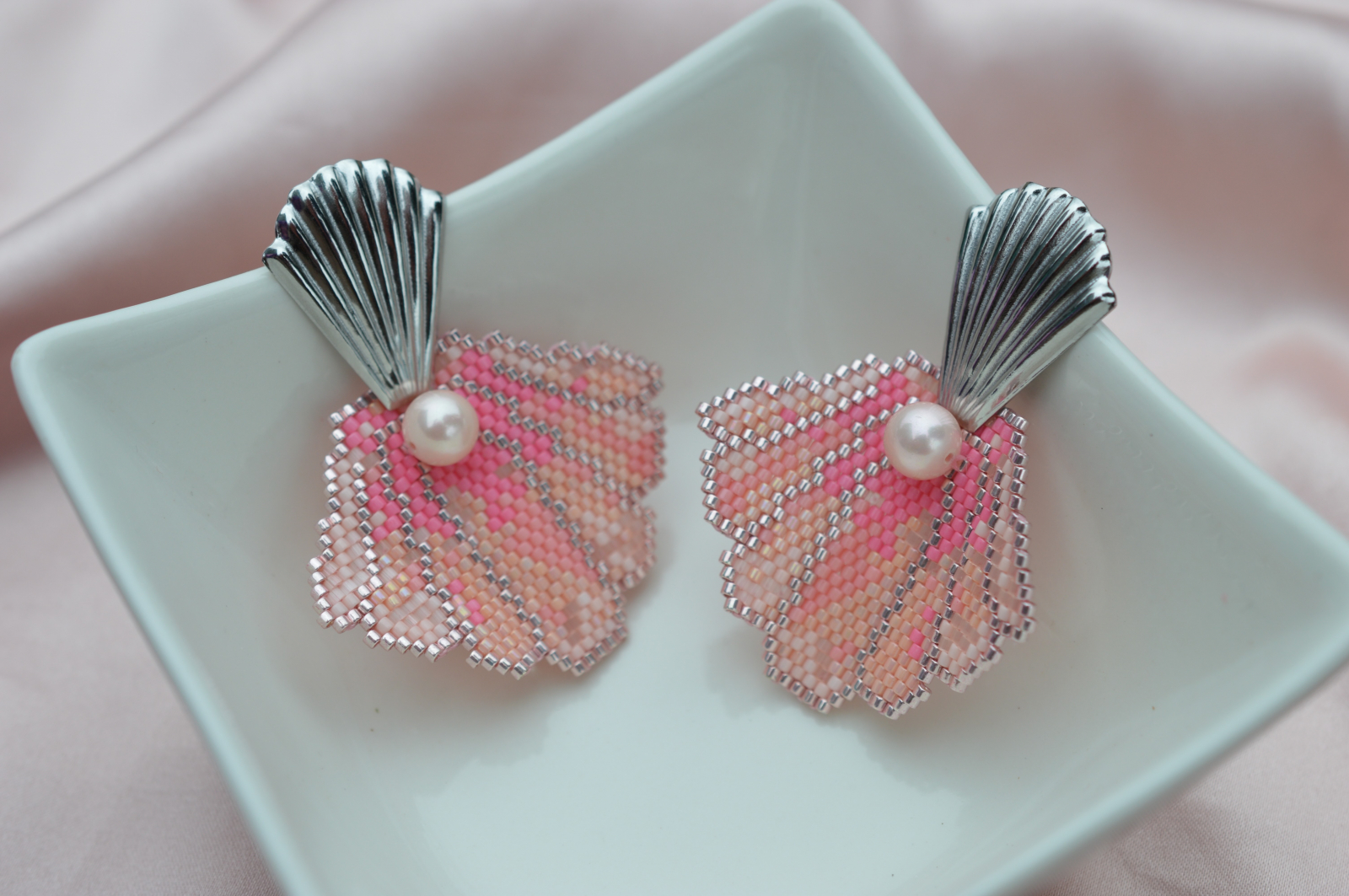 Cercei unici in forma de scoici roz, ce au la baza suruburi din otel inoxidabil pentru rezistenta si confort. Designul este completat de o perla Swarovski roz in mijloc si margele placate cu argint. Perfecti pentru iubitoarele de accesorii feminine si rafinate, acesti cercei sunt alegerea ideala pentru un look fresh si elegant.